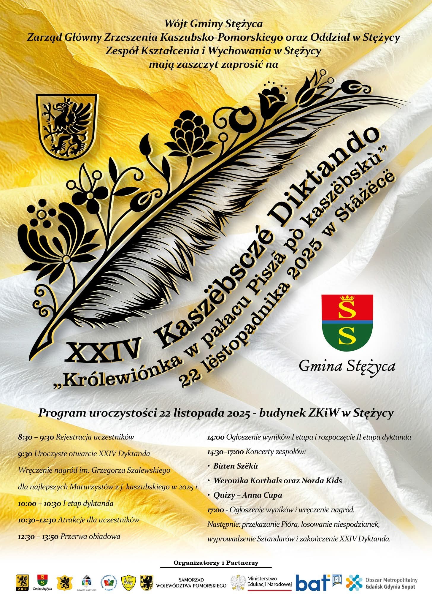 Dzisiaj 22 listopada w Zespole Kształcenia i Wychowania w Stężycy odbyło się XXIV Dyktando Kaszubskie „Piszã pò kaszëbskù – królewiónka w pałacu”, w którym wśród 175 uczestników byli też nasi reprezentanci: