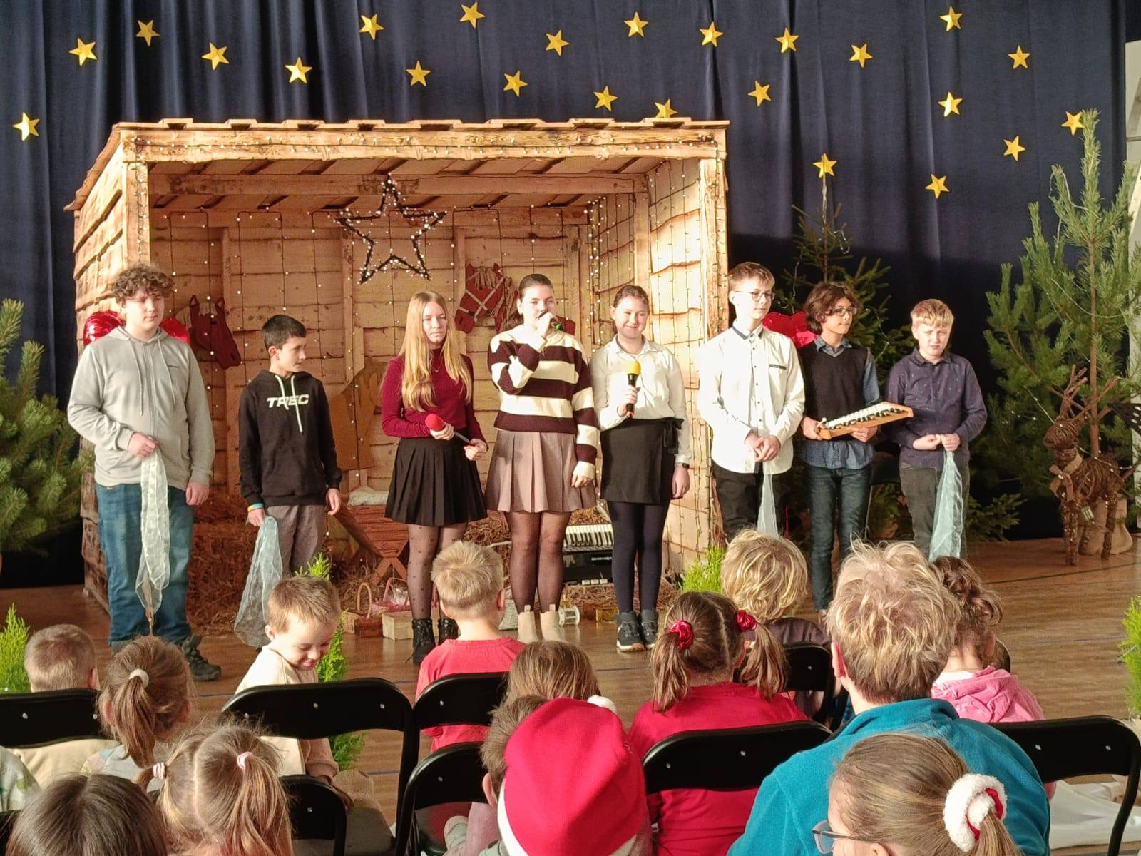 Ostatni dzień w szkole przed Bożym Narodzeniem, ostatni dzień w szkole w starym roku to czas wyjątkowy - świąteczne spotkanie wszystkich uczniów - jasełka i wspólne śpiewanie kolęd, w klasach starszych również klasowe wigilie. Podniosły nastrój, moc życzeń, rozmowy i po prostu bycie razem:)