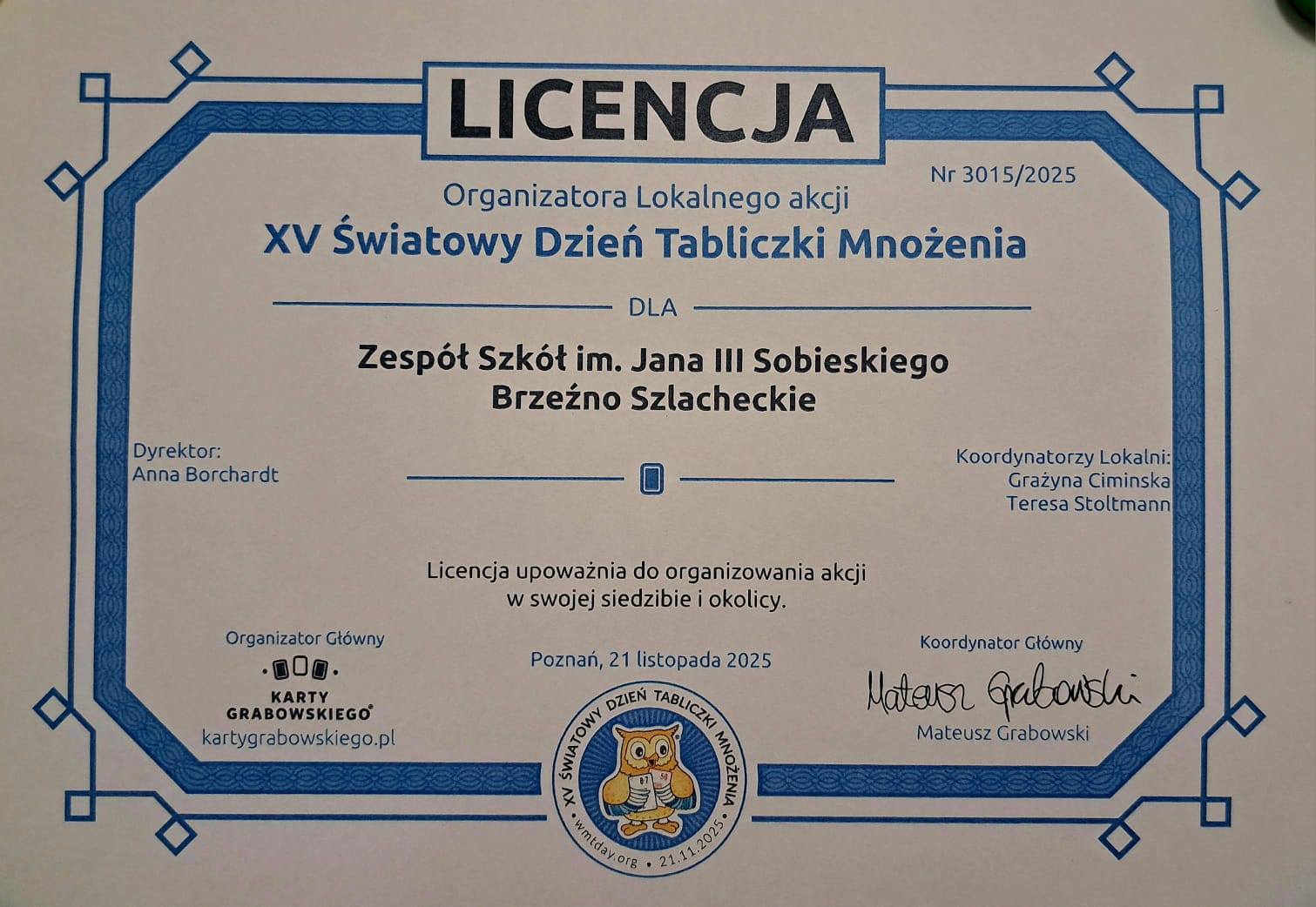 Za nami XV Światowy Dzień Tabliczki Mnożenia, który został oficjalnie otwarty tuż po pierwszym dzwonku. Na kolejnych przerwach egzaminatorzy sprawdzali znajomość tabliczki mnożenia wśród chętnych uczniów z kl. III - VIII, nauczycieli i pracowników Szkoły. Wydano łącznie 114 losów, z czego 53 wypełniono poprawnie. Tytuł Eksperta Tabliczki Mnożenia otrzymało 37 uczniów i 7 dorosłych.