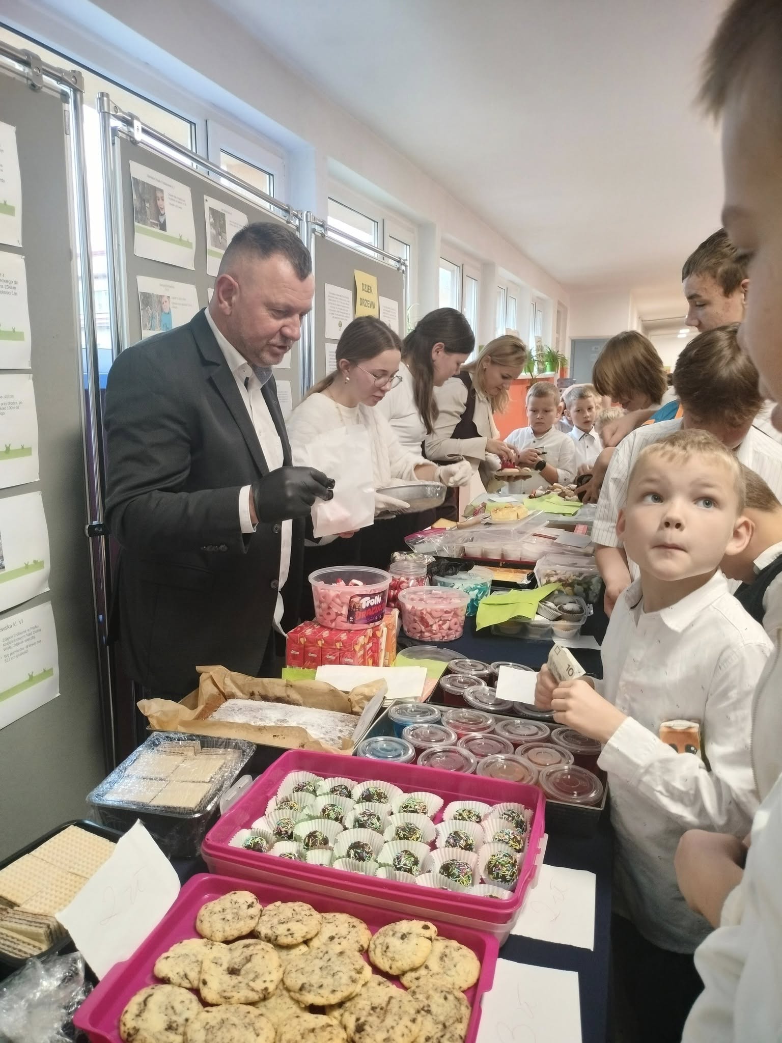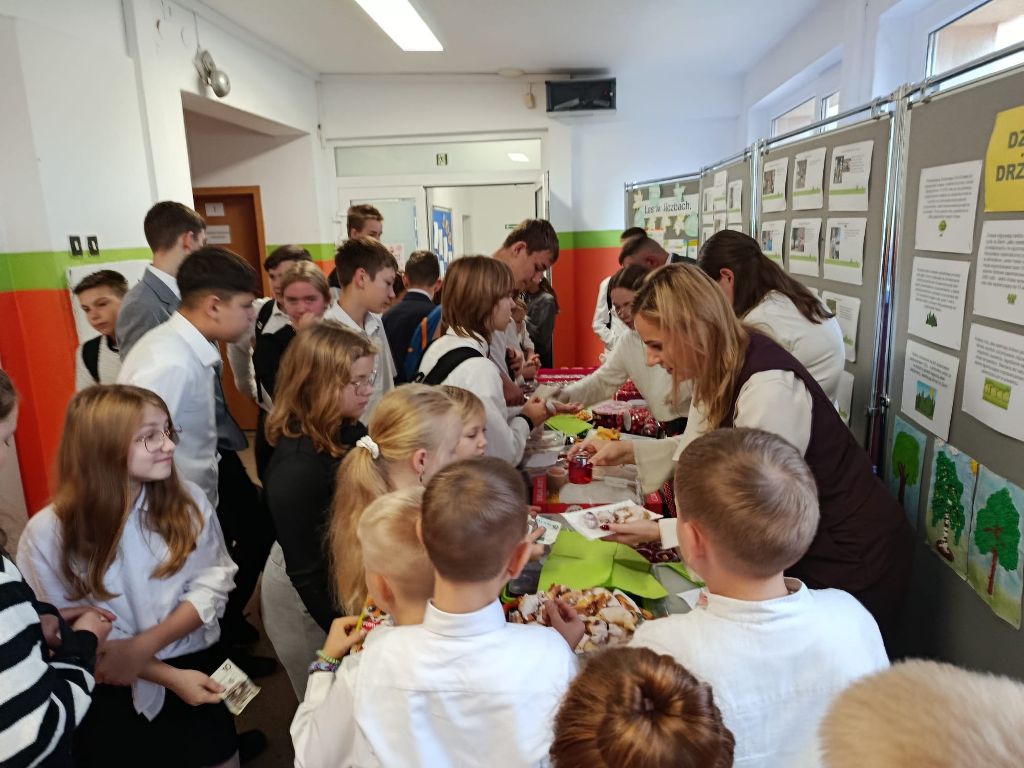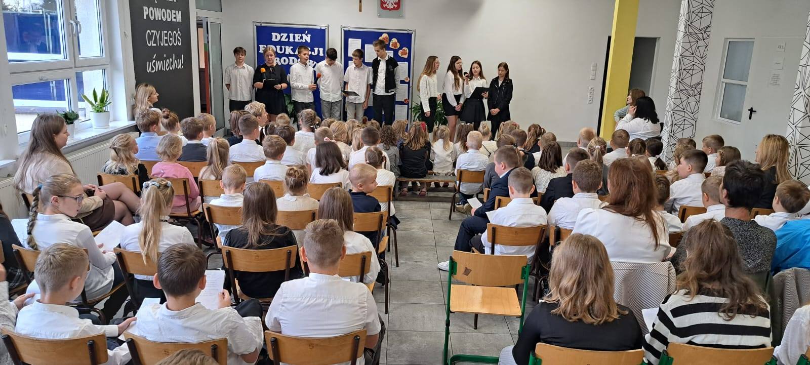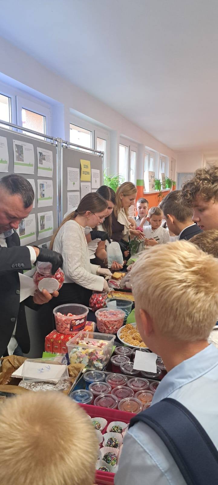 10 października nasza społeczność szkolna obchodziła Dzień Edukacji Narodowej - święto wszystkich pracowników oświaty, które w kalendarzu wypada dopiero we wtorek. Świąteczny nastrój dało się wyczuć na korytarzach od rana - galowe stroje, kwiaty, życzenia, mnóstwo uśmiechu i... słodkie wypieki. Samorząd Uczniowski przygotował bowiem nie tylko okolicznościowy apel, ale również kiermasz słodkości. Były wierszyki o poszczególnych pracownikach naszej Szkoły, piosenki po polsku i kaszubsku, życzenia i słodkie upominki.
