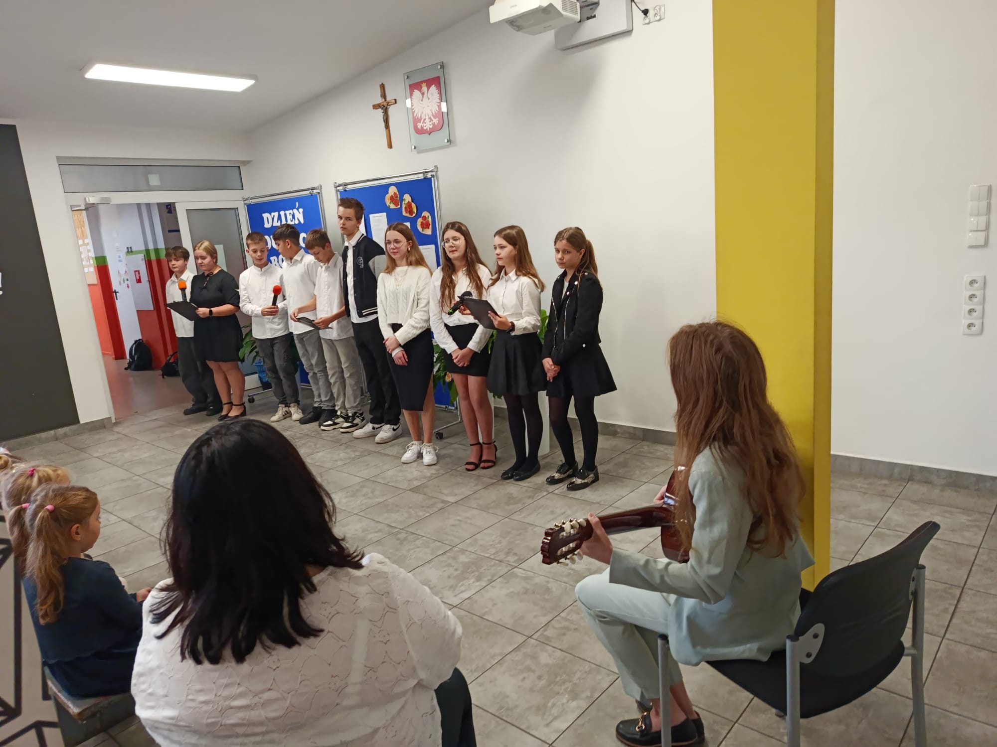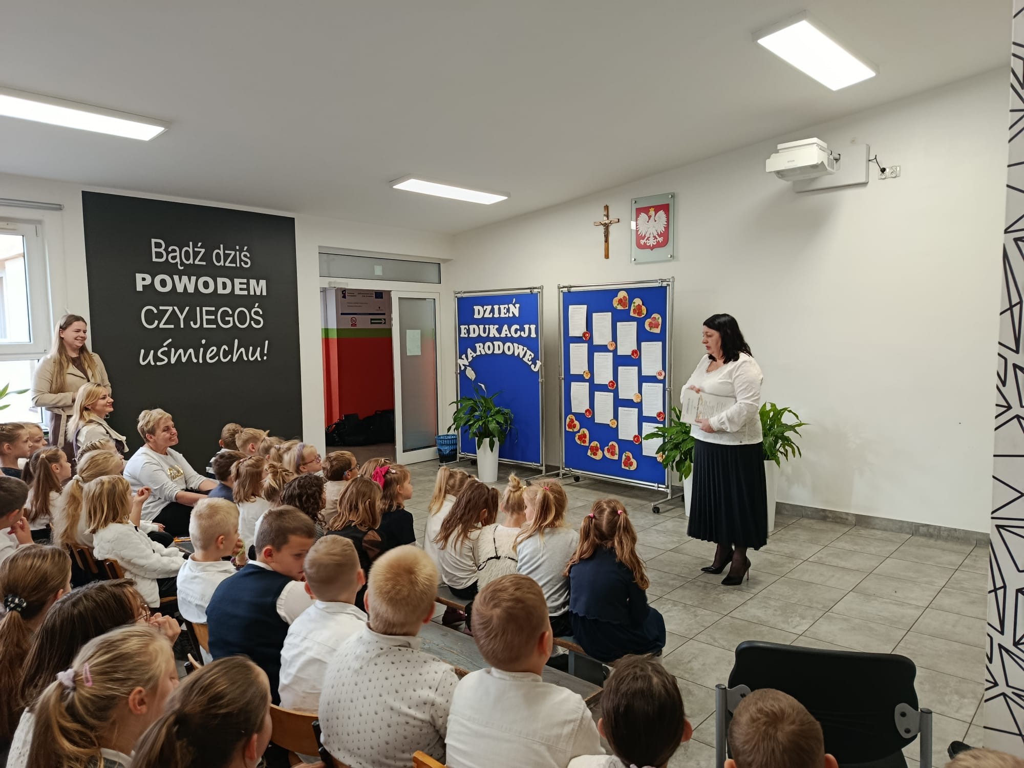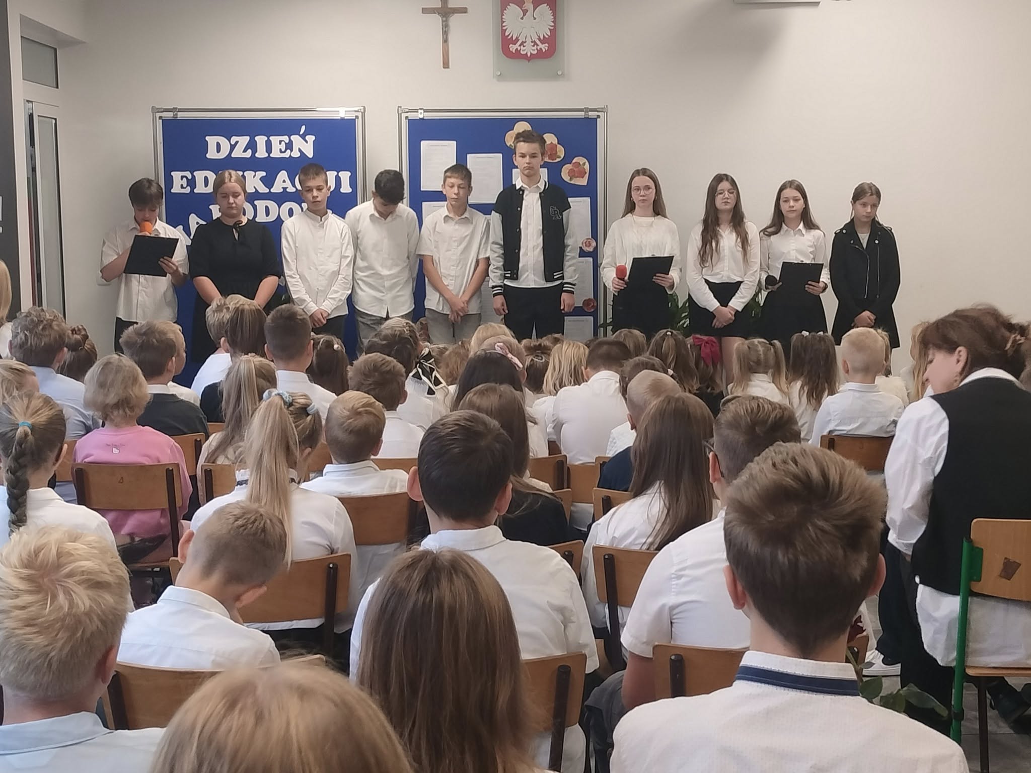 10 października nasza społeczność szkolna obchodziła Dzień Edukacji Narodowej - święto wszystkich pracowników oświaty, które w kalendarzu wypada dopiero we wtorek. Świąteczny nastrój dało się wyczuć na korytarzach od rana - galowe stroje, kwiaty, życzenia, mnóstwo uśmiechu i... słodkie wypieki. Samorząd Uczniowski przygotował bowiem nie tylko okolicznościowy apel, ale również kiermasz słodkości. Były wierszyki o poszczególnych pracownikach naszej Szkoły, piosenki po polsku i kaszubsku, życzenia i słodkie upominki.
