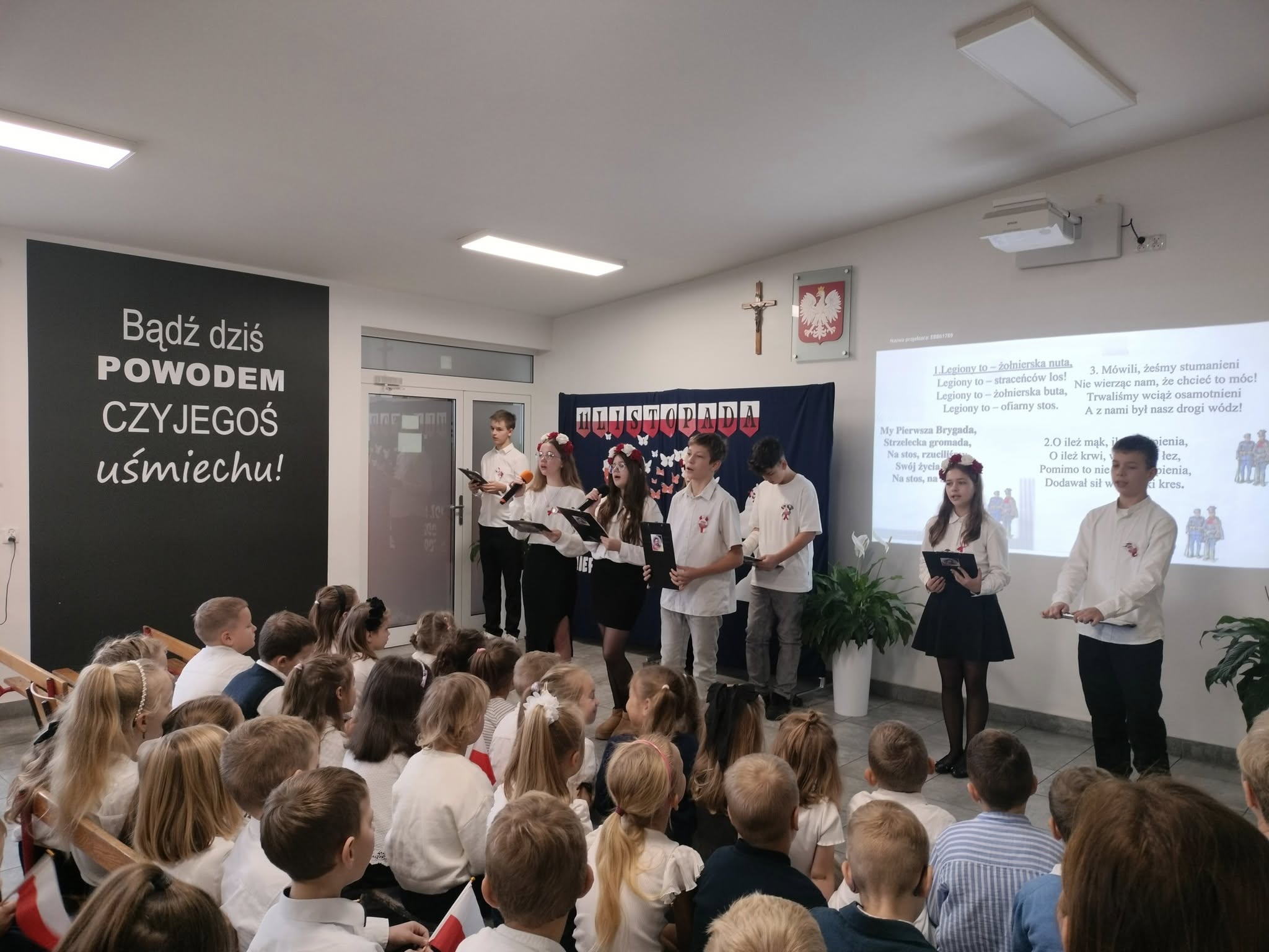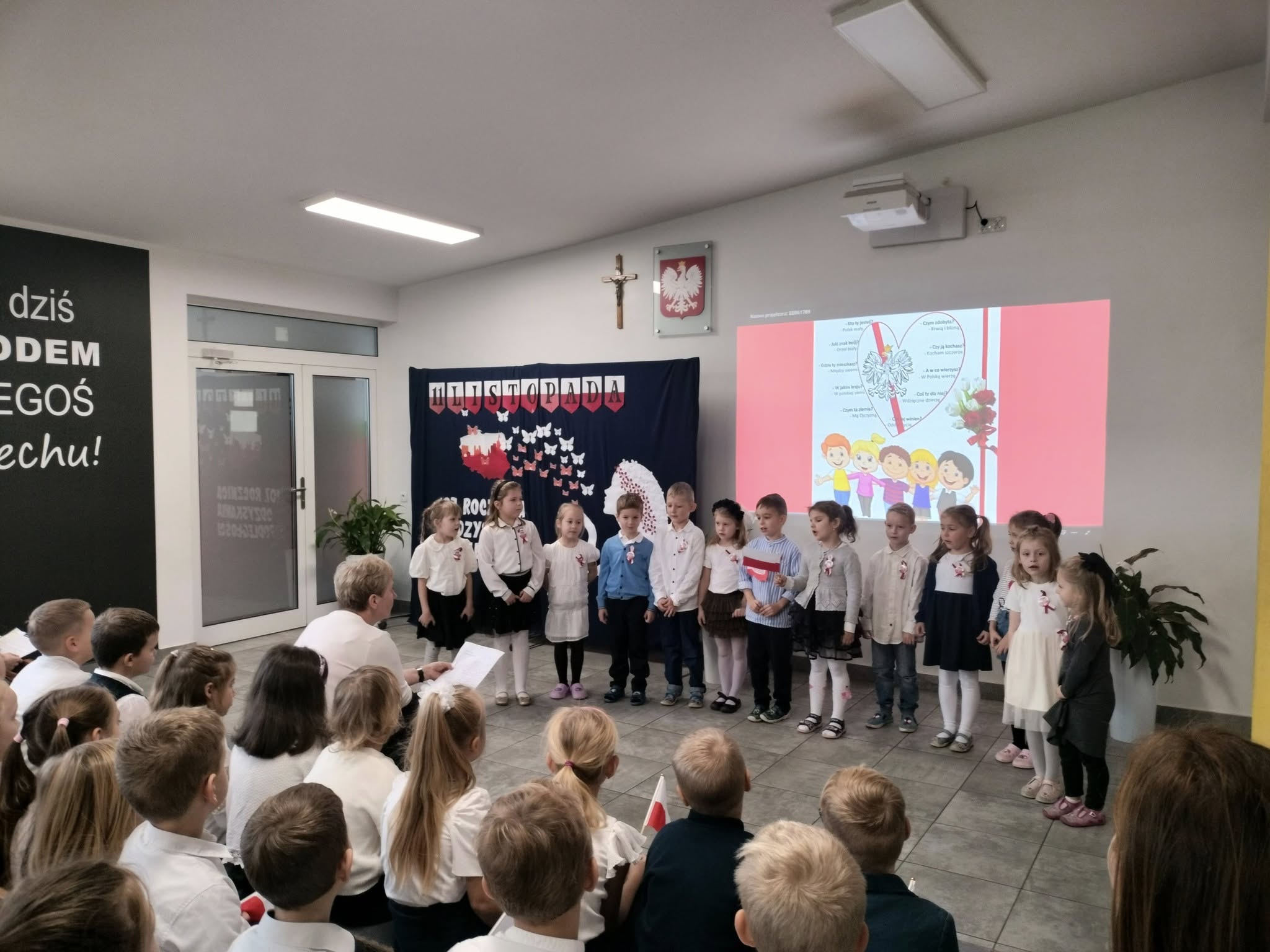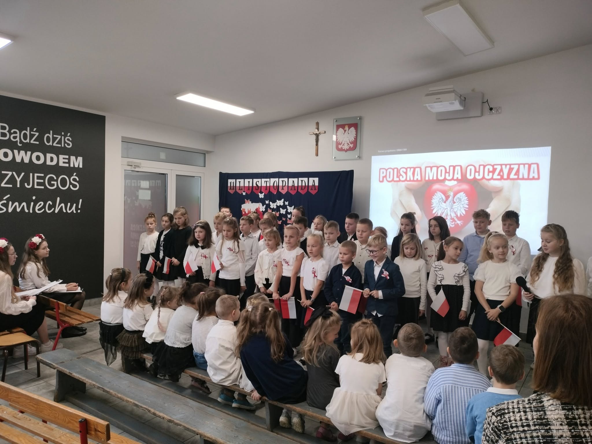 107 lat temu po 123 latach zaborów Polska odzyskała niepodległość. Piątkowa akademia (przygotowana przez uczniów klasy VII, a uświetniona występem dzieci ze starszej grupy przedszkolnej oraz z kl. I - III) wprowadziła wszystkich w świąteczny nastrój. W montażu słowno-muzycznym uczniowie przedstawili drogę naszej Ojczyzny do wolności, przypominając o tym, co ważne dla każdego Polaka. To pamięć o przeszłości naszego narodu, szacunek dla narodowych symboli, miłość ojczyzny, to godność i duma z bycia Polakiem.