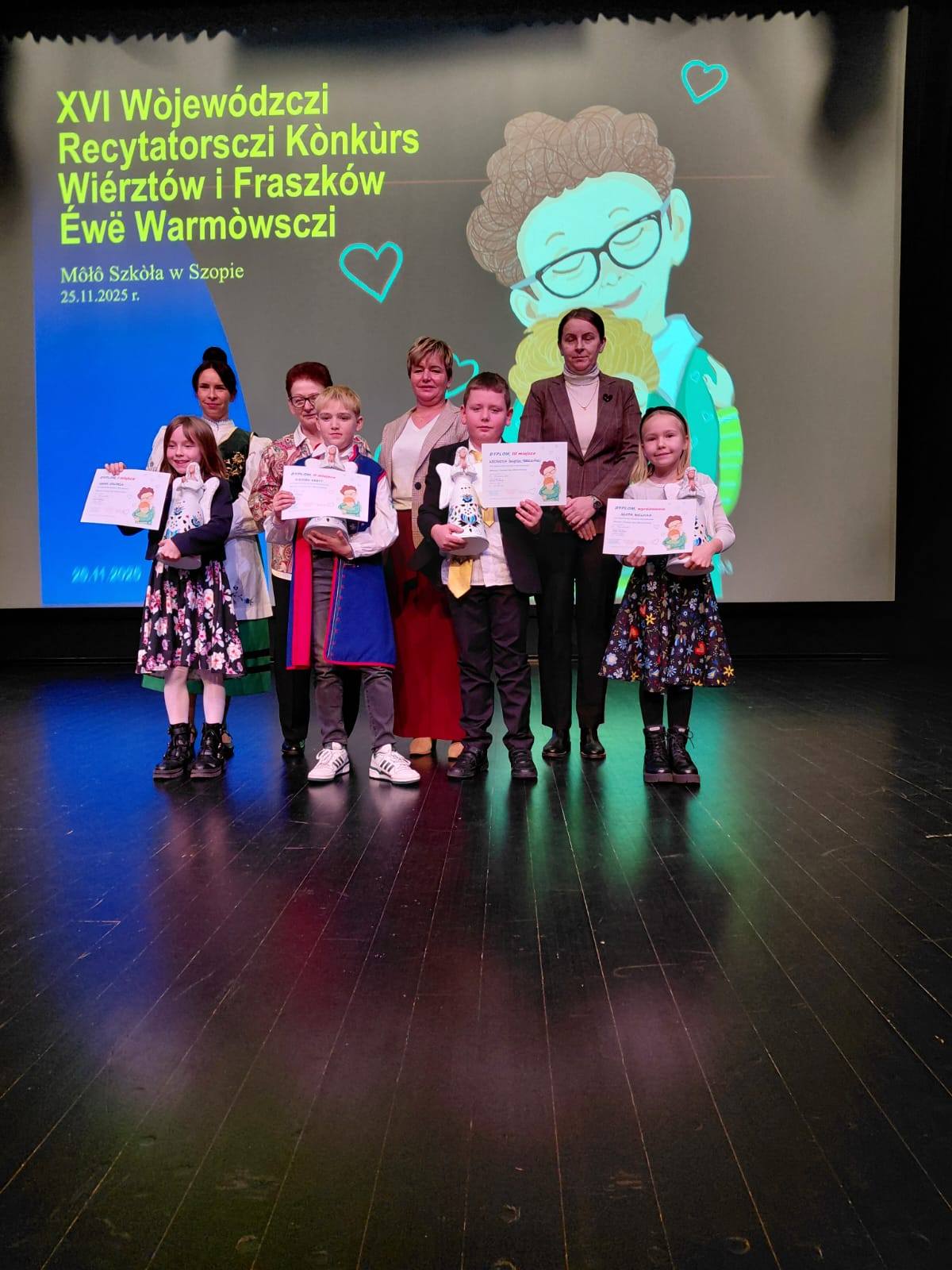 Odbył się kolejny konkurs z języka kaszubskiego, tym razem w Sierakowicach. W XVI Wojewódzkim Konkursie Recytatorskim Wierszy i Fraszek Ewy Warmowskiej organizowanym przez Małą Szkołę w Szopie naszą Szkołę reprezentowało ośmioro uczniów występujących w różnych kategoriach wiekowych: